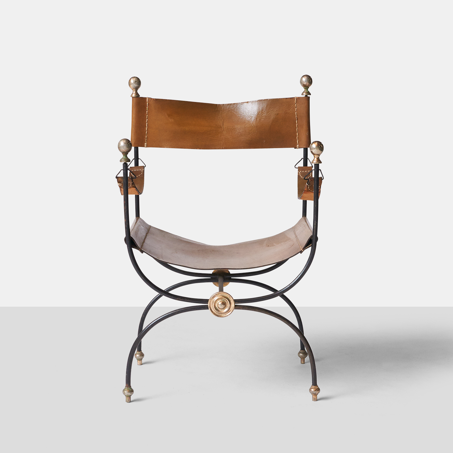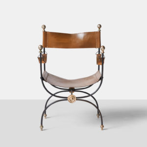 Jacques Adnet Iron and Leather Chair and Ottoman