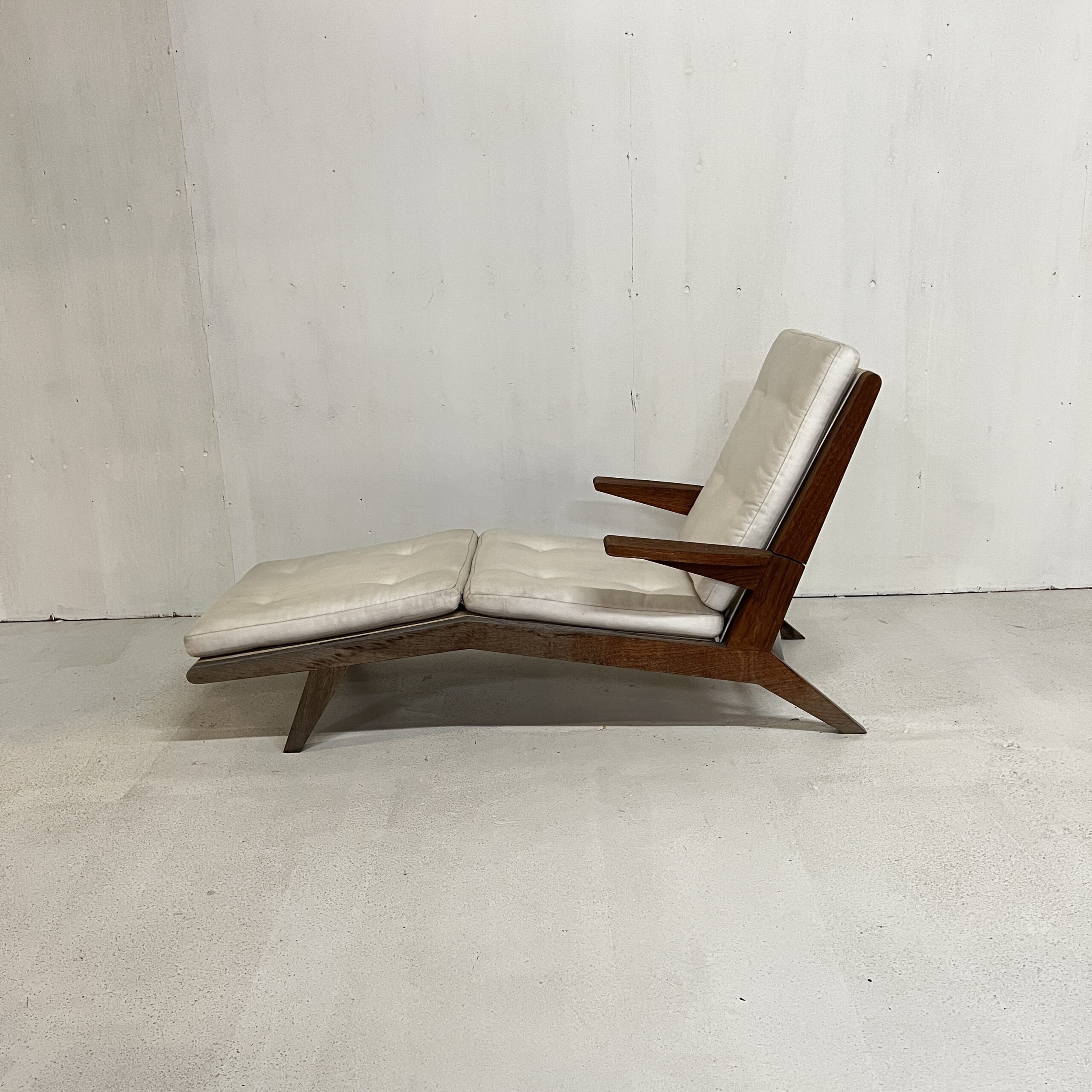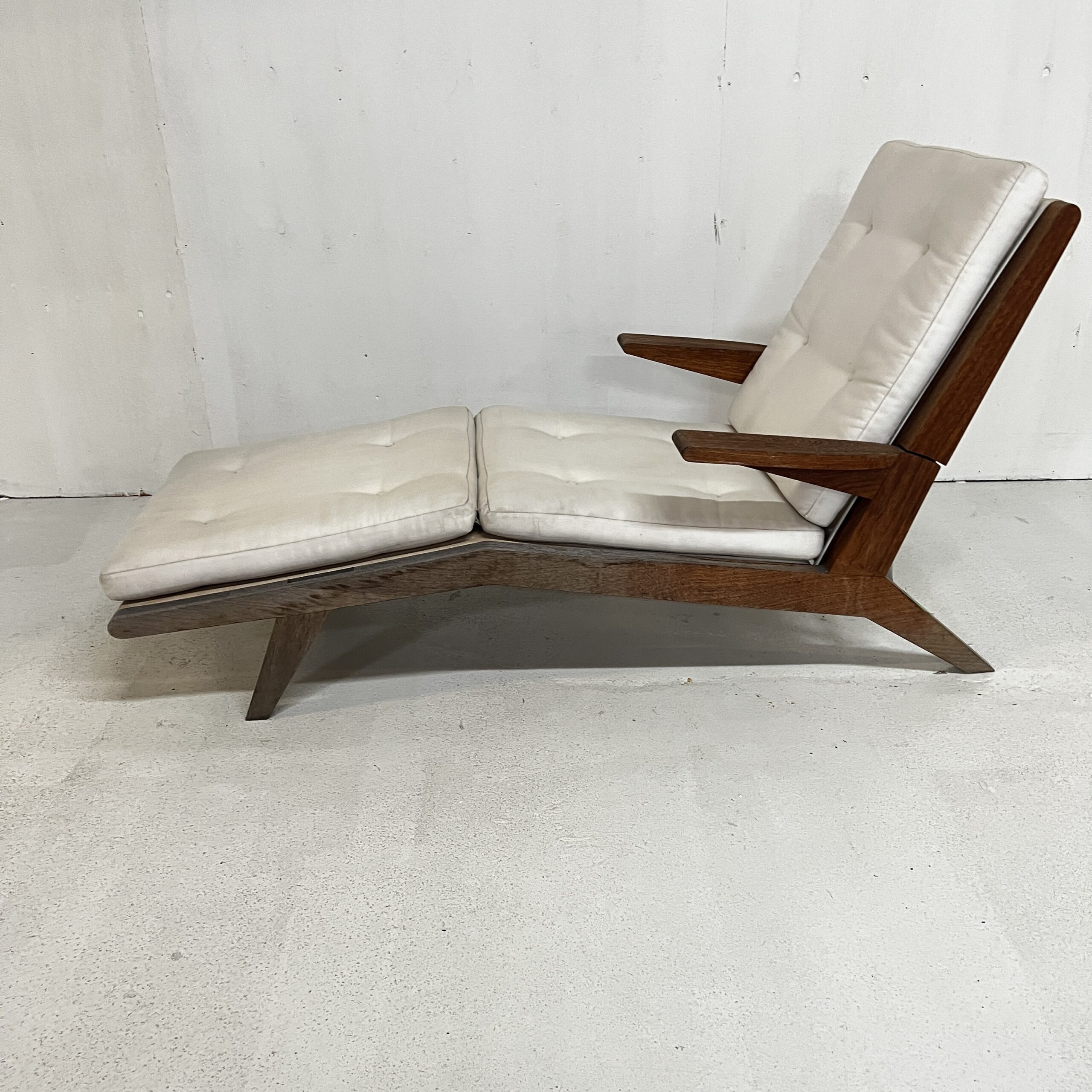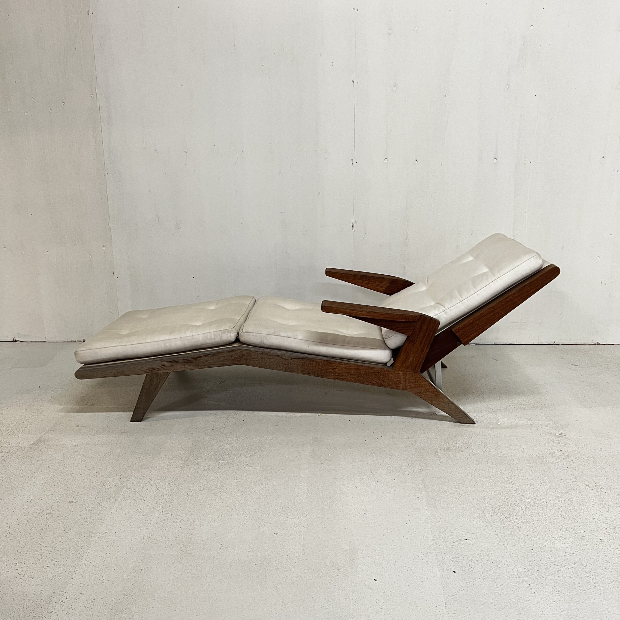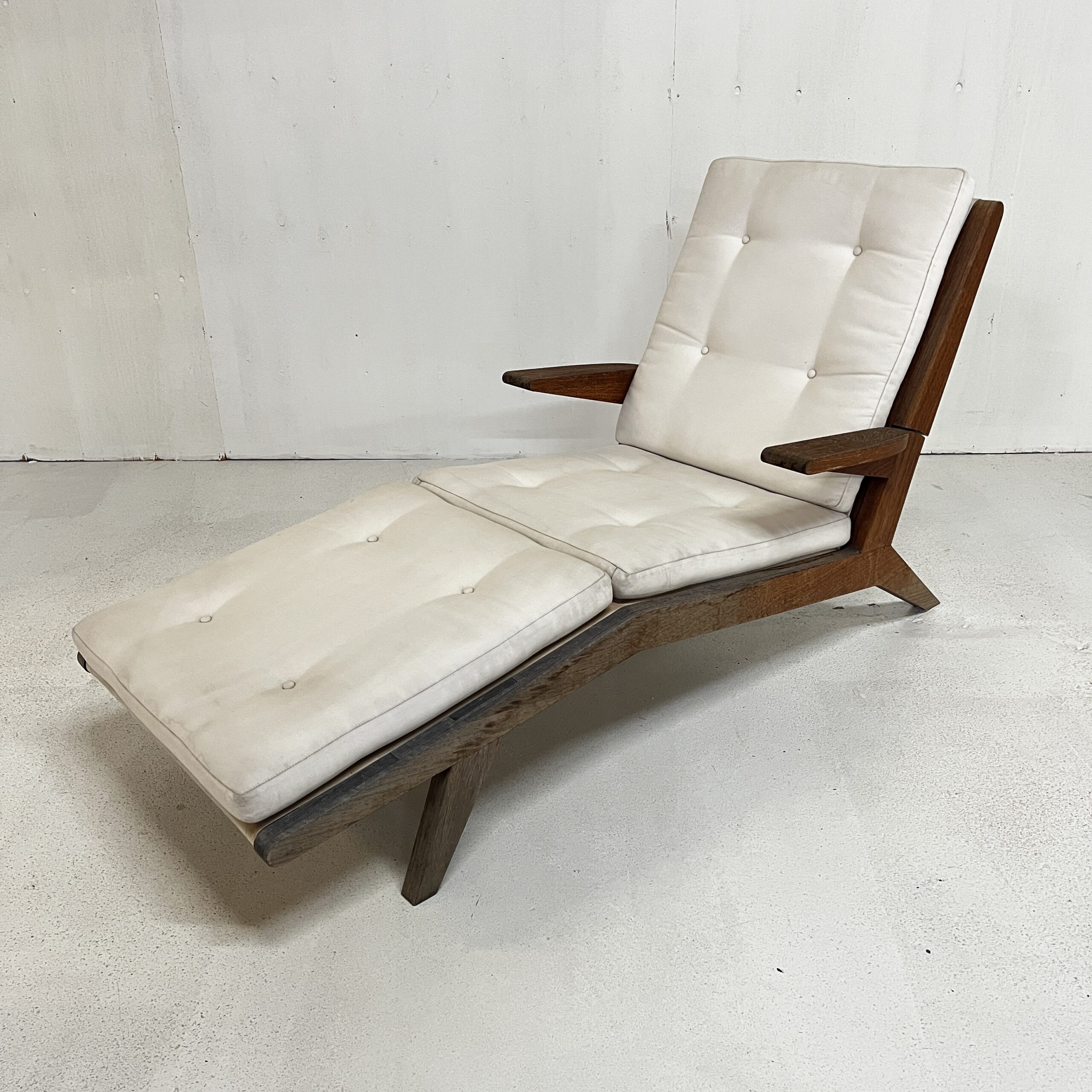 An open-arm lounge chair with 4 adjustable seat back heights. Previously used in our gallery, staged indoors and outdoors.