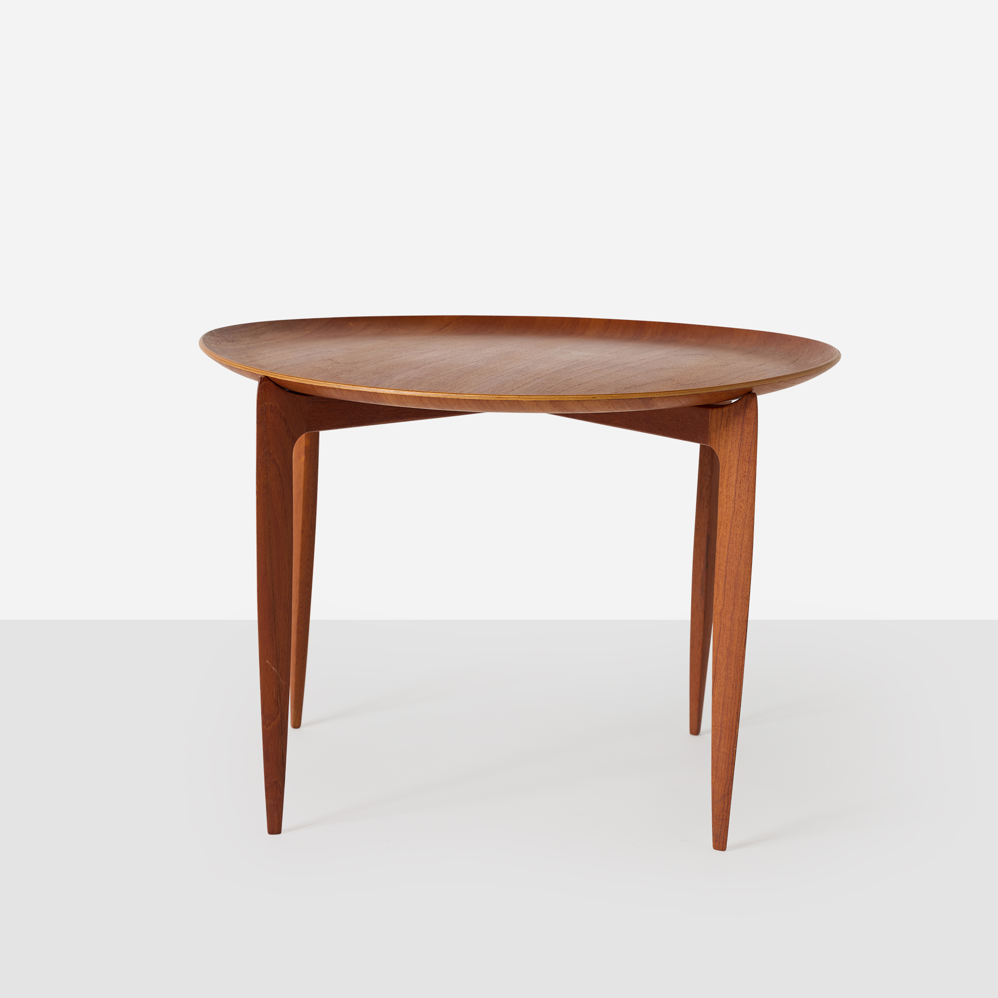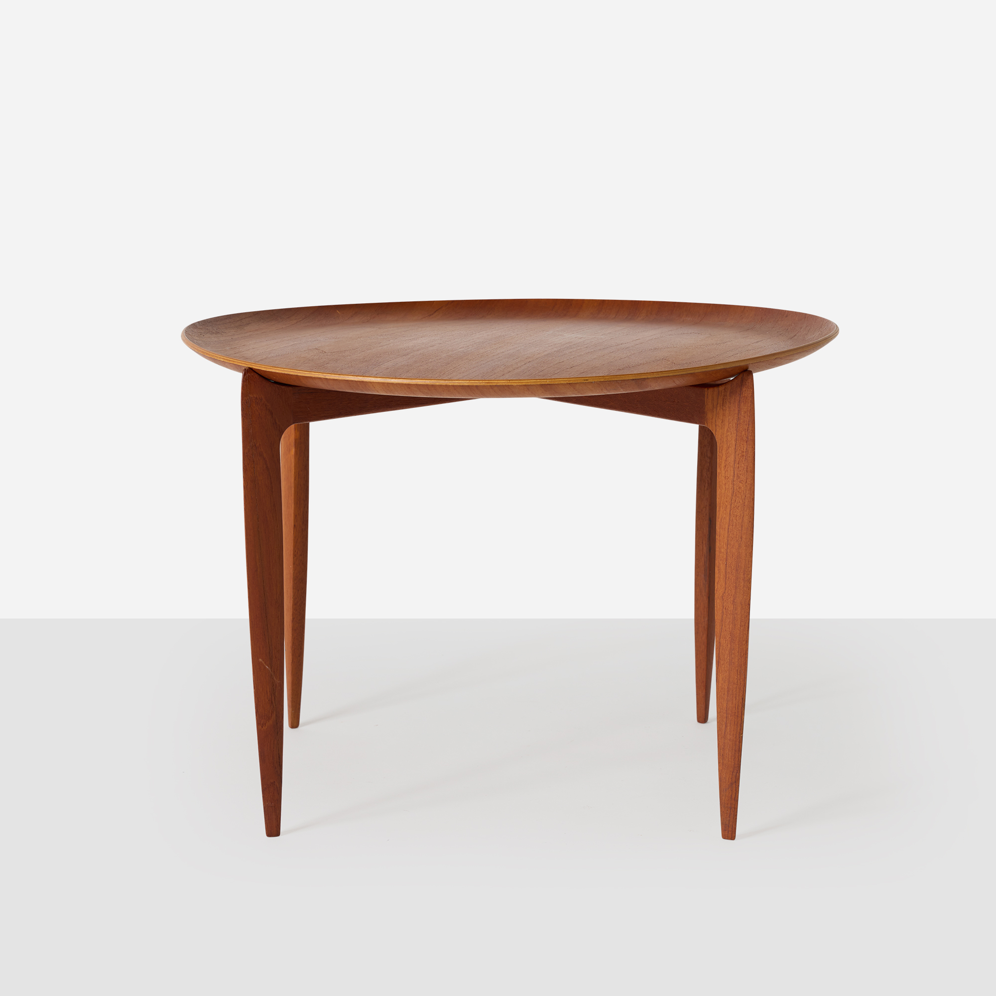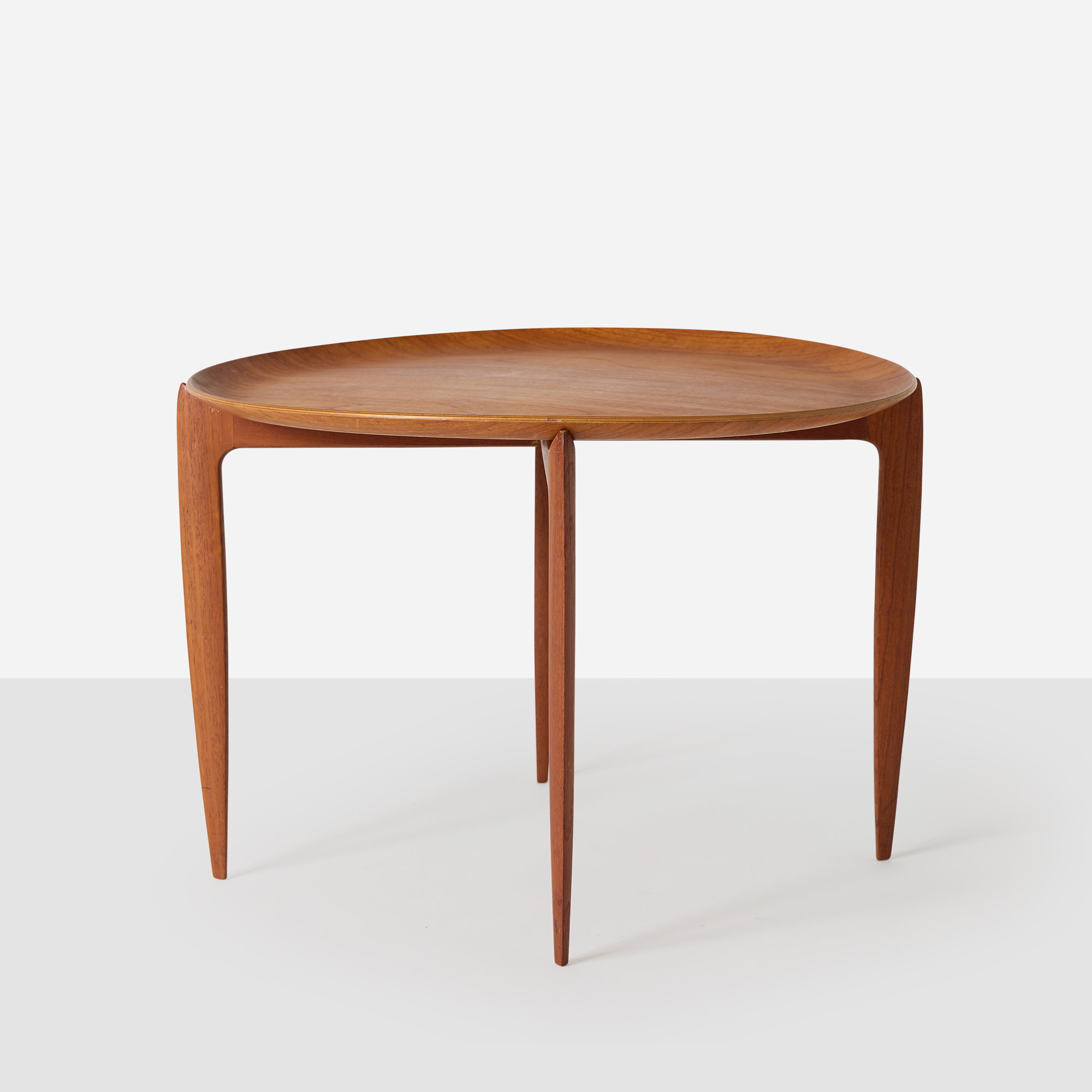 Fritz Hansen tray table designed by Svend Aage-Williamson & H. Engholm with removable teak tray on tapered teak folding legs. Made in Denmark. Signed.