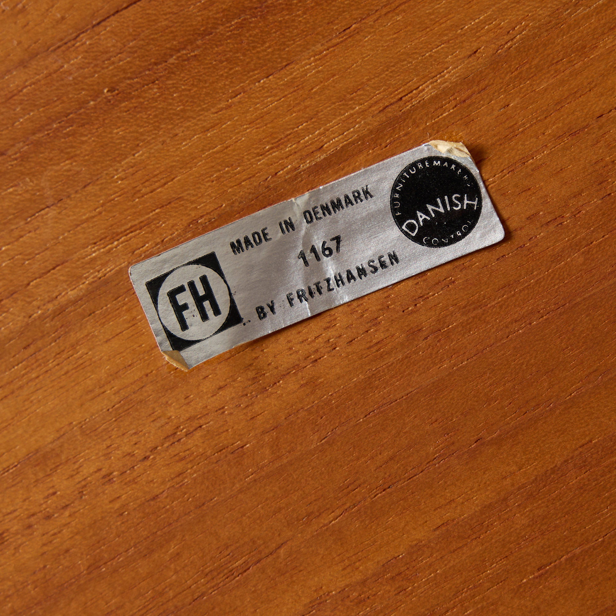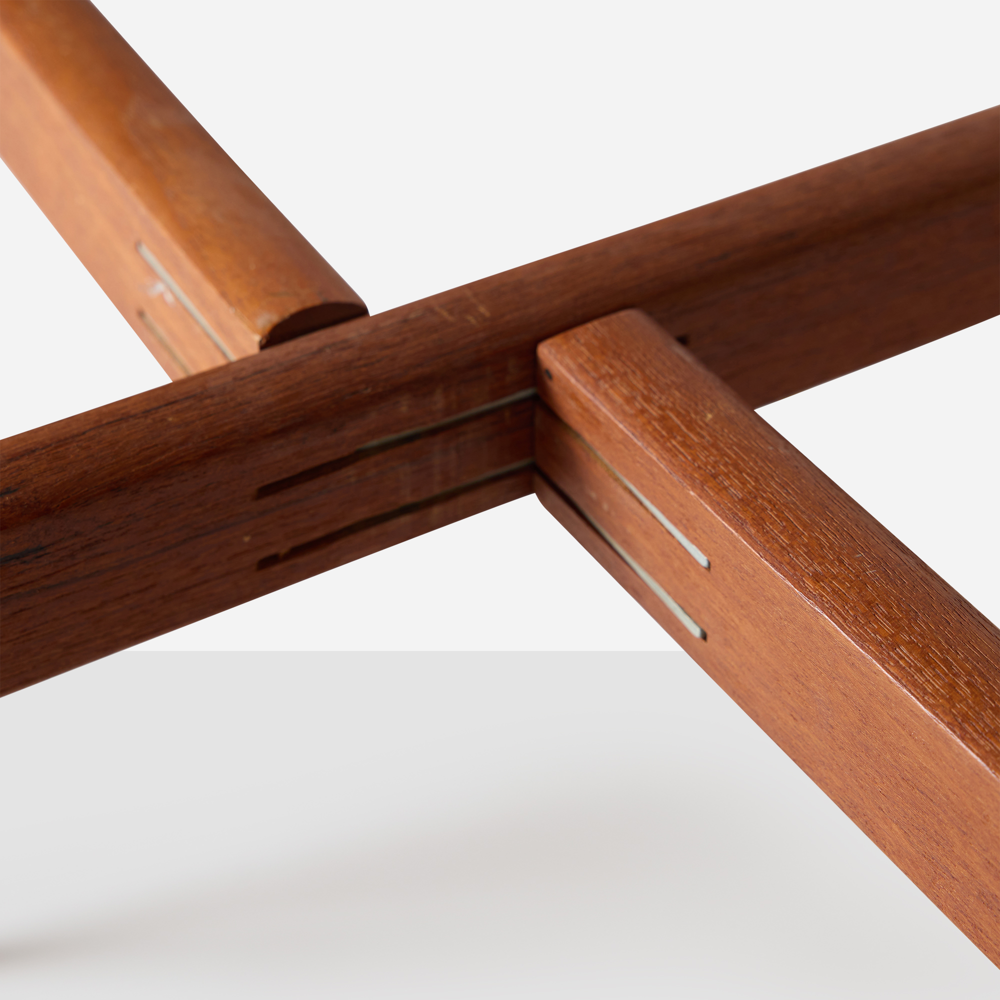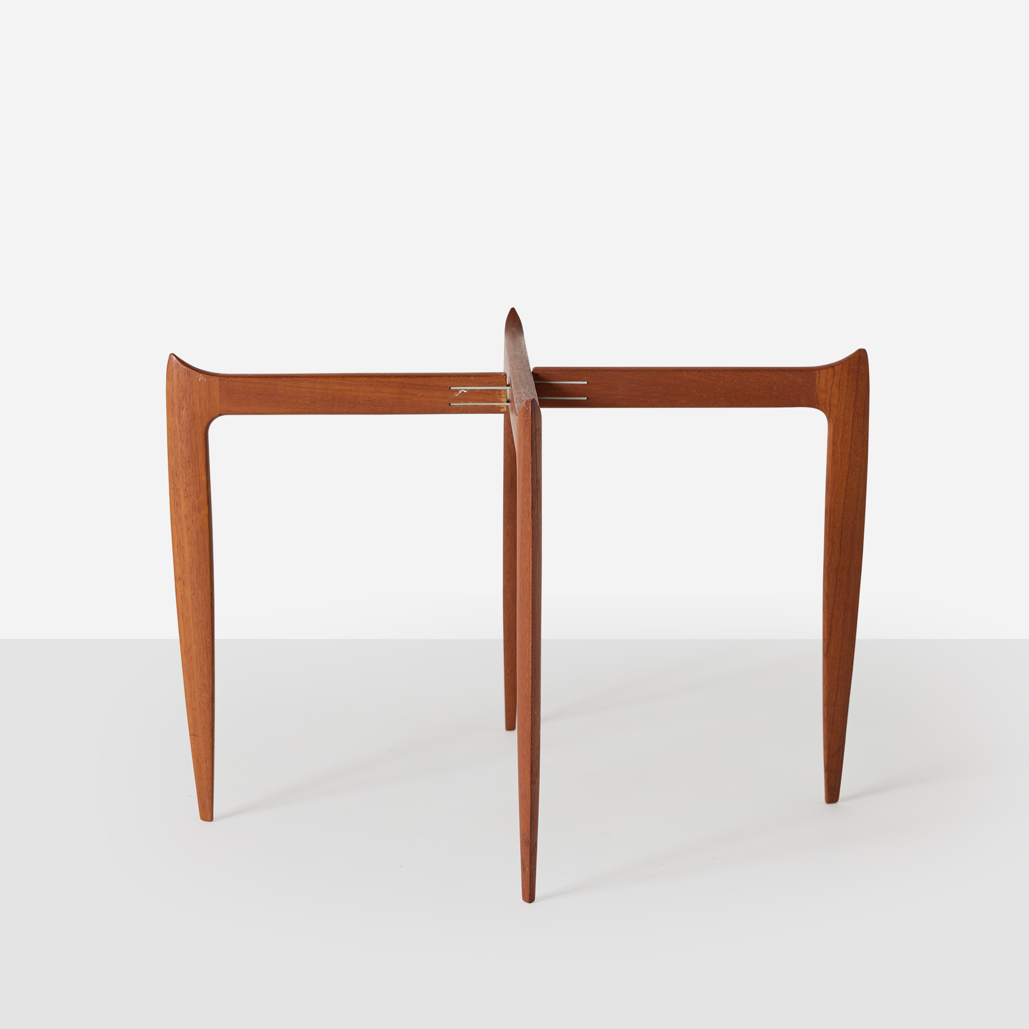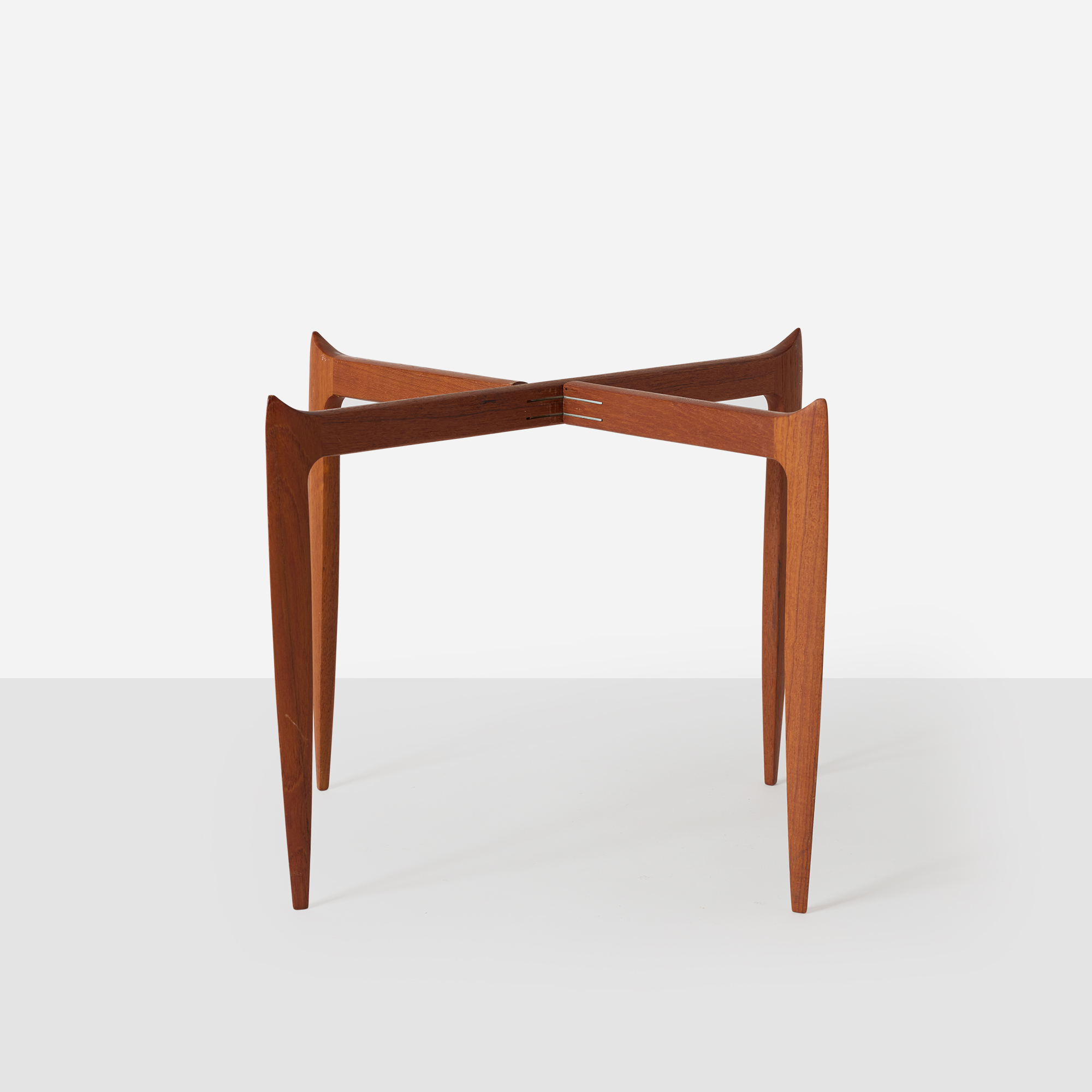 Fritz Hansen tray table designed by Svend Aage-Williamson & H. Engholm with removable teak tray on tapered teak folding legs. Made in Denmark. Signed.