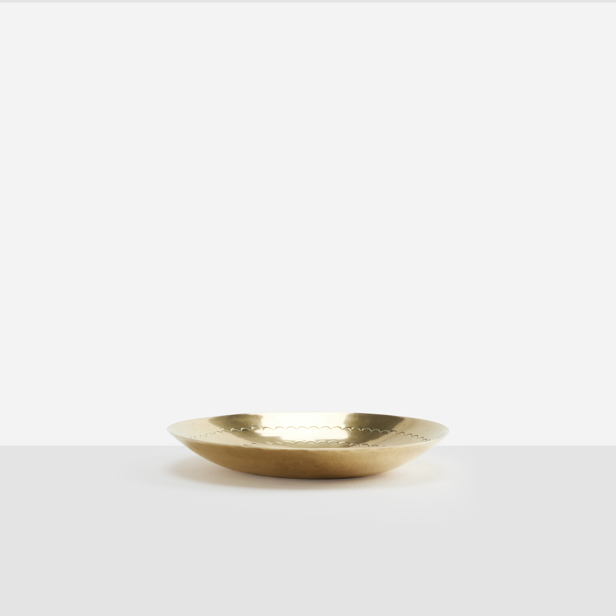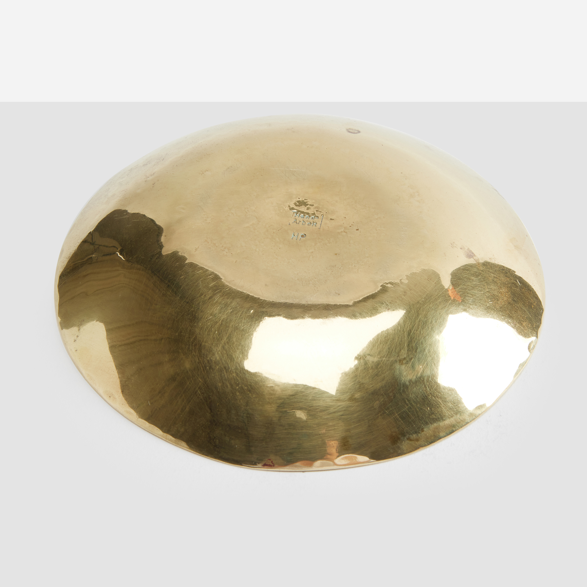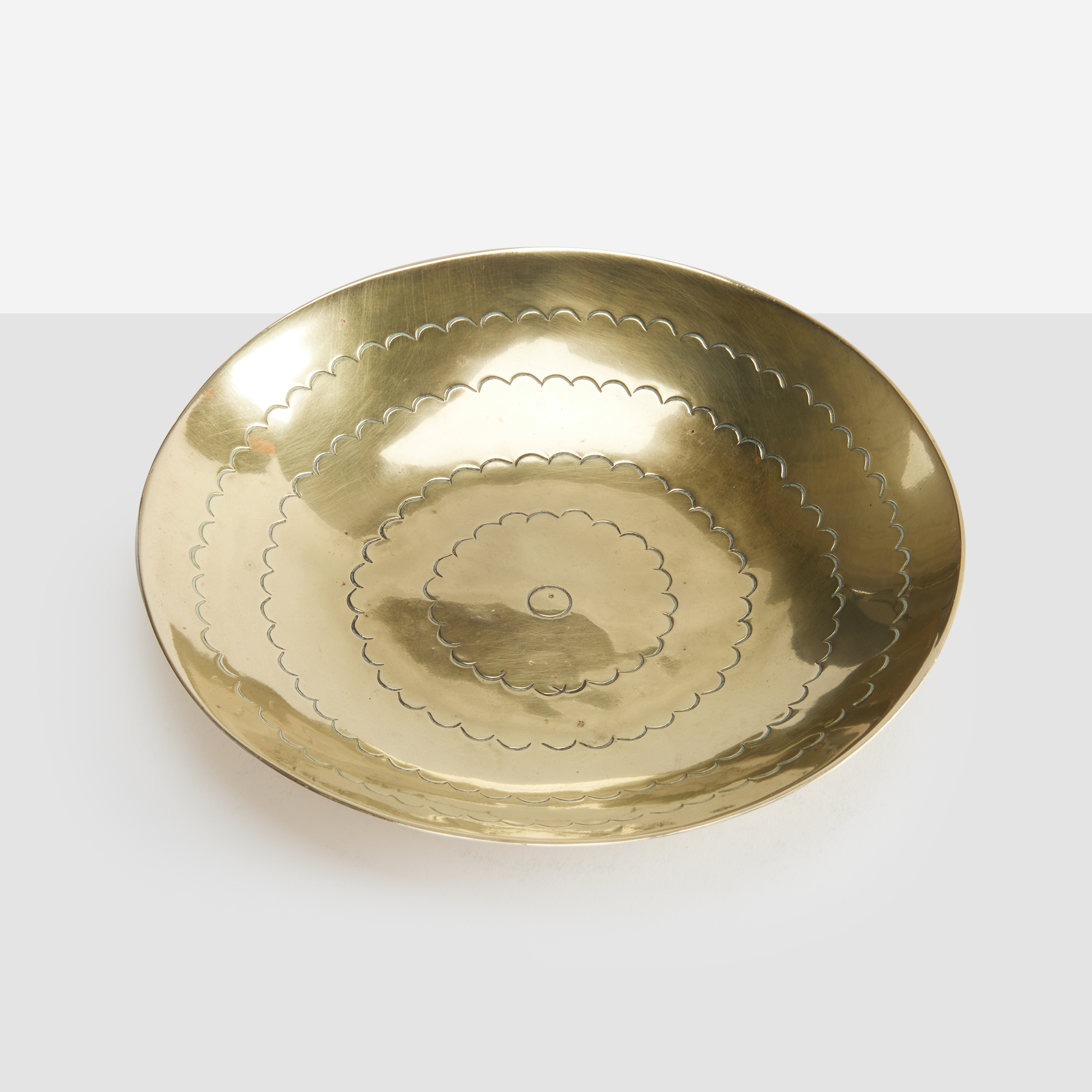 A small hammered brass dish with interior etchings by Hayno Focken for Thand-Arbek [Thand-Arbek HP].