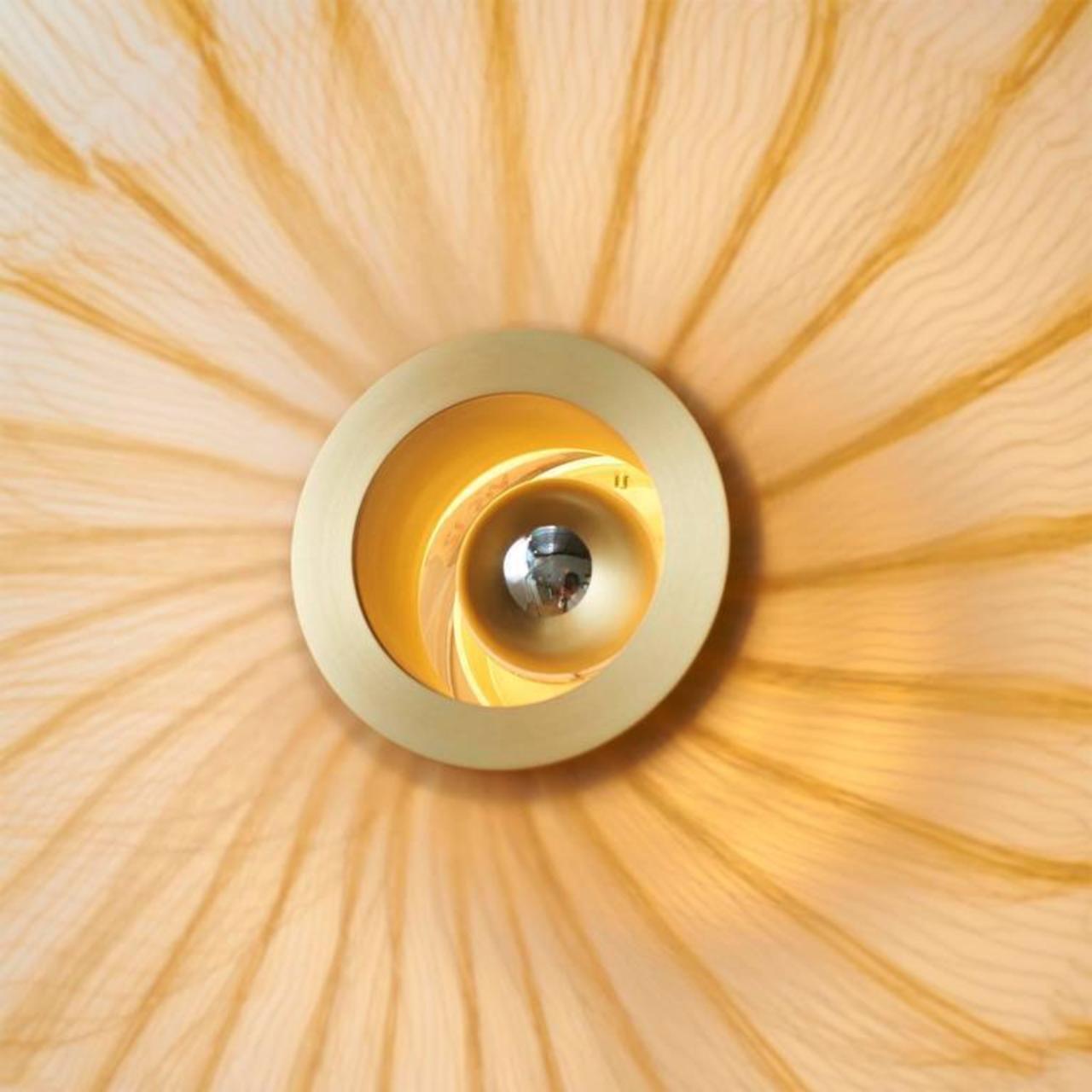A wall light made of free handblown glass by celebrated artist Jeremy Maxwell Wintrebert in Paris. The large-scale light has brass hardware and a single bulb in the centre that reflects thru the glass.